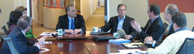 Code Council Board President Steve Shapiro and CEO Rick Weiland met with U.S. Green Building Council (USGBC) President‚ CEO and Founding Chairman Richard Fedrizzi recently to discuss future business opportunities. During the visit‚ USGBC Director of Education and Research Partnerships Linda Sorrento gave Weiland and Shapiro a tour of USGBC’s platinum-level‚ Leadership in Energy and Environmental Design (LEED)-certified offices.