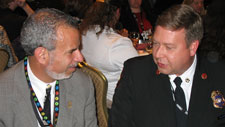 Code Council Board President Steve Shapiro (left) speaks with Dwayne Garris‚ Assistant State Fire Marshal for the State of Georgia during the CFSI Annual Dinner. Garris represents the National Association of State Fire Marshals on the International Fire Code Council.