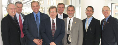 Welcoming the American Gas Association as the Code Council’s newest strategic partner are‚ from left: Ron Nickson‚ National Multi Housing Council; Ed Sutton‚ National Association of Home Builders; Code Council CEO Rick Weiland; Jim Ranfone‚ American Gas Association; Code Council COO Dominic Sims; Code Council Board President Steve Shapiro; Carlos Martin‚ National Association of Home Builders; and Ron Burton‚ Building Owners and Managers Association International.