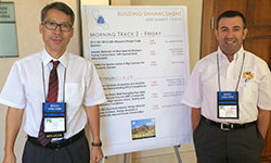 Mahmut Ekenel, Ph.D., P.E., and David Zhou, P.E., S.E., Senior Staff Engineers in the Brea, Calif., office were invited to present a technical paper titled, "Testing and Acceptance Conditions for Light-Frame Shear Wall Strengthening Using Glass Fiber-Reinforced Polymer (GFRP) Composite Systems in Buildings Assigned to High Seismic Design Categories," during the SEAOC Annual Convention. The presentation was well attended. The SEAOC Convention was held Sept. 10-13 in Indian Wells, Calif. |